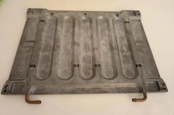 Eine weitere Möglichkeit besteht darin, Guss und Bearbeitung zu kombinieren, um Kühlplatten herzustellen. Wenn das Gussteil beispielsweise nicht flach genug ist, ist ein zweiter Arbeitsgang erforderlich, um die Kühlplatte auf die gewünschte Ebenheit zu bringen. Es ist wichtig zu beachten, dass Sandgussteile nicht zum Vakuumlöten von Kaltplatten geeignet sind, da die meisten der verwendeten Legierungen Schmelztemperaturen unterhalb der Vakuumlöttemperatur haben. Ihr Einsatz ist strikt auf röhrenförmige Kühlplatten beschränkt. Es empfiehlt sich, Angebote für beide Produktionsverfahren einzuholen und die Vor- und Nachteile abzuwägen.
