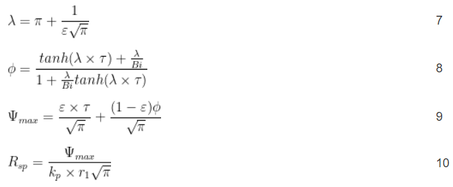 Der Wärmediffusionswiderstand (R sp ) ist das Ergebnis des Wärmeflusses durch Leitung zwischen der Schalenkontaktfläche auf der Oberfläche der Platte und der größeren Kühloberfläche der Platte. Lee et al. [1] stellte eine geschlossene Gleichung für R sp auf . Diese Gleichungen liefern sehr gute Annäherungen an exakte Lösungen, werden hier jedoch aufgrund der Komplexität der erforderlichen Berechnungen nicht besprochen.